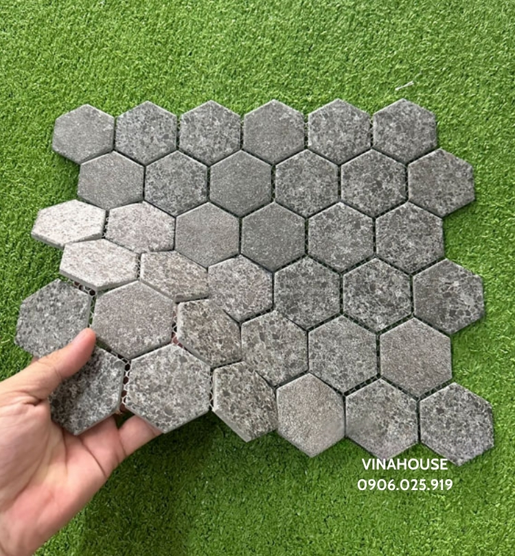 Gạch mosaic lục giác màu xám đen