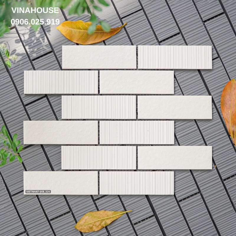 ⭐ Gạch trang trí Việt Nhật JKB-324 có khả năng chống chịu thời tiết, bảo vệ công trình trước tác động môi trường.